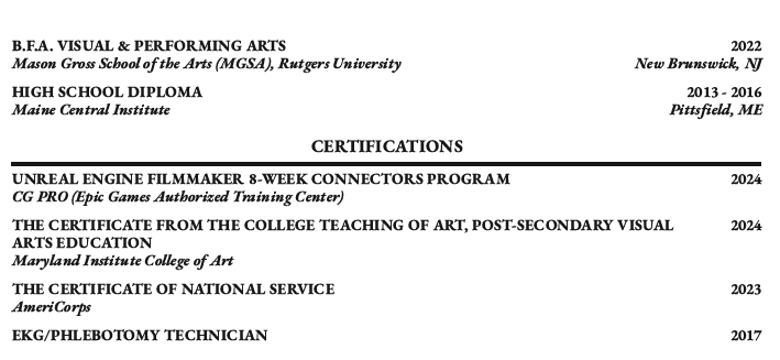 Visual Artist, Educator, and 3D Animator with a robust foundation in creative arts and education. With extensive experience in 3D modeling, illustration, and project management, excels in crafting innovative visual content and educational materials. Passionate about leveraging artistic skills to inspire and educate, aiming to contribute to forward-thinking projects and collaborative environments.